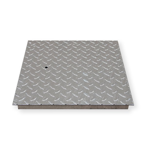 Tapa fabricada de chapa estriada o lagrimada de 3/5 con refuerzo de angulo de 40x40x4 mm soldado en su interior para arquetas apto para el transito peatonal,encarga online una tapa fabricada de chapa estriada o lagrimada a medida.